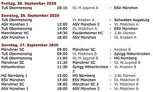 Erfreut präsentieren wir heute nachstehend den Spielplan für dieses Wochenende. Dank geht an Hans Öckler und unsere Jugendwarte für dessen Erstellung in schwieriger Zeit. Einige Jugendmannschaften haben sich bereits bei Freundschaftsspielen in Schwung gebracht: So waren die A-Mädchen zu Gast bei HG Nürnberg und übten gegen die A-Mädchen vom MSC. Die D-Knaben testeten gegen MSC ihre Spielstärke. Trainer Bastiaan Schuil organisierte überdies kurz vor Schulstart mit seinen mJB- und A-Knaben-Teams ein Leistungs-Trainingscamp bei uns auf dem Platz.