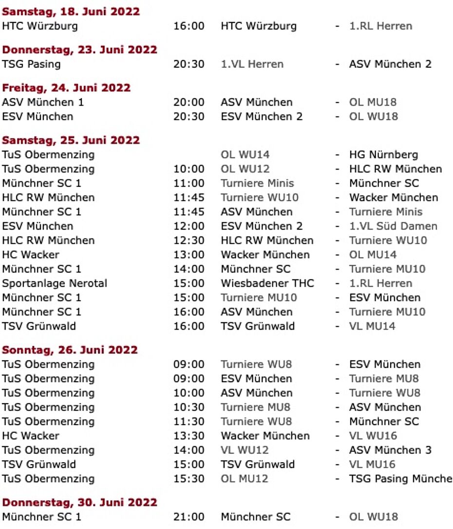 Spielplan bis Ende Juni