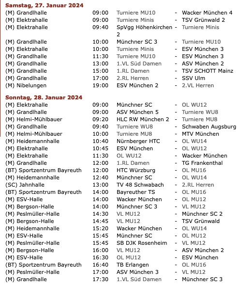 12:00 Uhr gegen Würzburg, 14:00 Uhr gegen Bayreuth und 16:40 Uhr gegen Erlangen