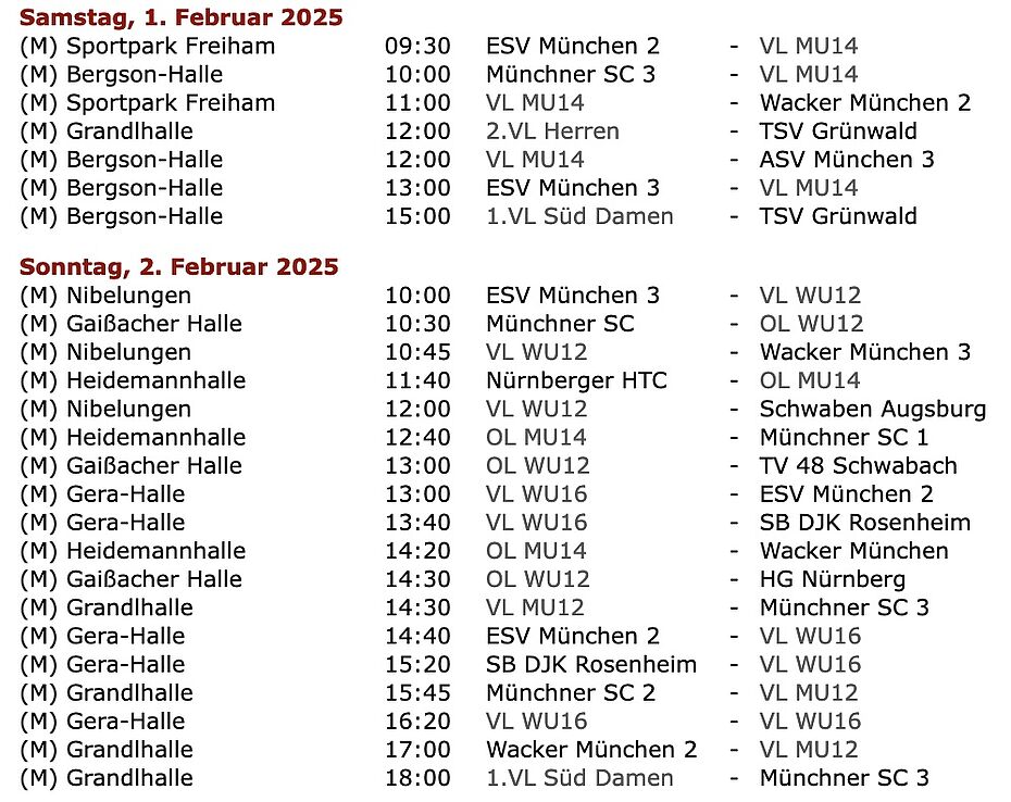 Spielplan 01. und 02. Februar