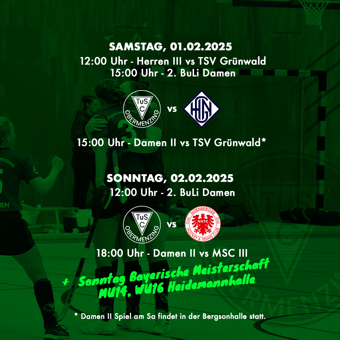 Am letzten Spielwochenende wollen die Damen nochmals vor heimischem Publikum gegen HG Nürnberg und NHTC glänzen. Die erste Hallensaison in der 2. Bundesliga haben die Damen gemeistert und die Fans können sich nächste Saison wieder auf Bundesliga Hockey freuen. Bedanken wir uns am Wochenende bei den Damen mit unserer Unterstützung für die gute Leistung.