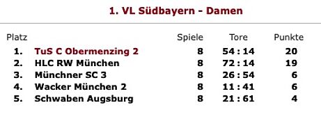 2. Damen gewinnen 6:0 gegen Wacker. Grünwald wurde aus dem Wettbewerb genommen. Für die Endtabelle bedeutet das, dass TuS doch noch an RW München an der Tabelle vorbeizog und als Südmeister in die Oberliga aufsteigt.