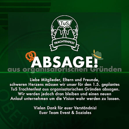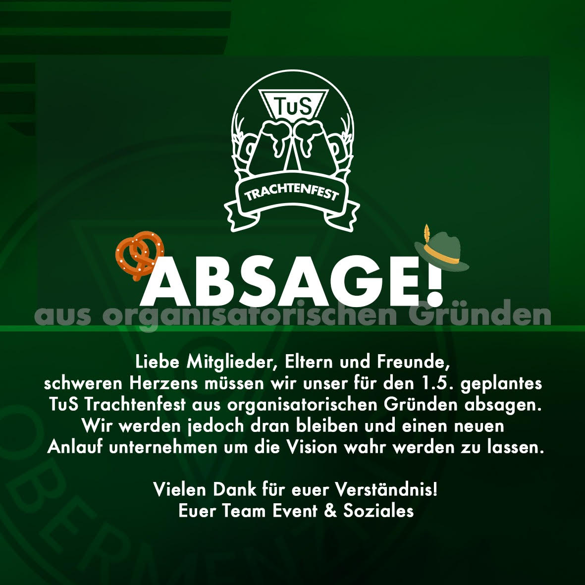 TuS Trachtenfest ABGESAGT – leider müssen wir aus organisatorischen Gründen das geplante Trachtenfest absagen.
