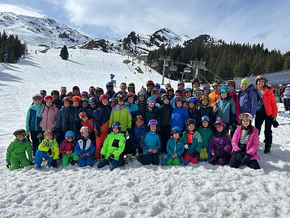 Frisch ausgeruht nach einer kurzen Nacht mit etlichen Pizzastücken, Kaiserschmarren und mitternächtlichem Geburtstagskuchen zu viel im Bauch hatte so mancher Probleme, das köstliche Frühstück in vollen Zügen zu genießen. Die Kids hingegen schienen topfit und schlugen sich mit Kakao, Kellogs und Nutella-Semmeln die Bäuche voll. Pünktlich um 9:00h traf man die Horde dann unten an der Bergbahn, um dann auf 2000m so richtig loszulegen. Nachdem im Tal bei 19 Grad bereits T-Shirt Wetter angesagt war, mussten sich die ersten bereits in der Gondel ihrer Klamotten entledigen. Der Föhnsturm sorgte aber weiter oben für erheblich kühlere Böen, doch auch das hielt die Jungs und Mädels nicht davon ab, selbst bei schwierigen Verhältnissen die Piste herunter zu heizen. Die Sonne und warmen Temperaturen sorgten vor allem ab Mittag für Wasserski-Feeling. Trotz alledem legten unsere Youngsters eine astreine Performance am Hang hin. Während der ein oder andere Erwachsene bereits früher einen Boxenstopp einlegen musste, fuhren die außer Rand und Band geratenen Kids bis beinahe 16:30h mit einer kurzen Pause auf der Hütte, wo sich wiederum alle trafen und wieder Energie tankten. Im Anschluss konnte sogar ein Gruppenfoto mit allen Teilnehmerinnen und Teilnehmern vor winterlicher Kulisse geschossen werden. Die TuS-Truppe hatte Riesenspaß, jung wie alt, und der Gruppenzwang sorgte bei manchen für beinah übermenschliche skifahrerische Leistung!