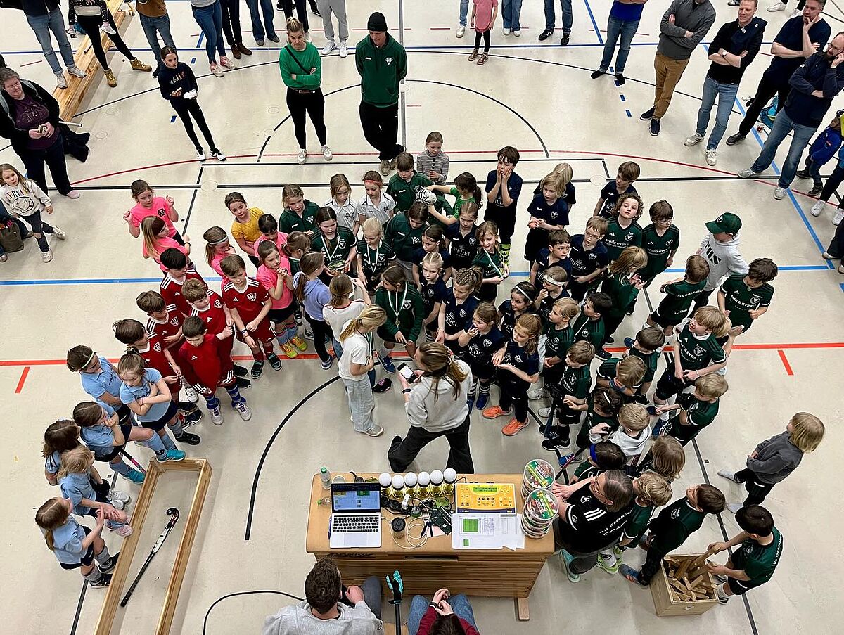 Anpfiff war um 10 Uhr, und die Spiele folgten zügig aufeinander. Jedes Team absolvierte mindestens fünf Spiele und zeigte große Motivation, um den heiß begehrten Pokal zu gewinnen. Am Ende durften bei den Mädchen der HC Wacker und bei den Jungen eine der TuS-Mannschaften die Siegerpokale in die Höhe stemmen. Dennoch ging kein Kind leer aus: Alle erhielten eine Medaille, Sticker und Süßigkeiten.