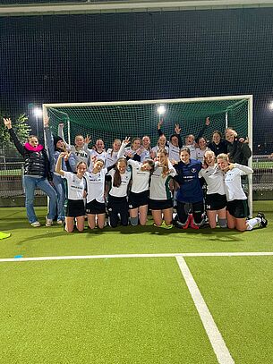 wir 3 Punkte! Im ersten Viertel konnten wir trotz anfänglicher Trägheit durch einen Nachschuss bei einer Ecke 1:0 in Führung gehen. Obwohl wir uns die meiste Zeit in der gegnerischen Hälfte befanden, schaffte es der ASV bei einer Kontergelegenheit, auszugleichen. Im zweiten Viertel ging es wacher und agiler weiter. Wir festigten unseren Ballbesitz und bauten unser Kontaktspiel aus. Schließlich gelang uns das schön ausgespielte 2:1. Nach der Halbzeitpause, in der uns Vio noch weiter motivierte, funktionierten auch unsere Systemwechsel besser und das Spiel wurde kommunikativer. Im letzten Viertel konnten wir noch zwei weitere Tore erzielen, während das Wetter unaufhörlich zwischen schwül und Regen wechselte. Über den Endstand 4:1 freuen wir uns und haben als Ziel, diese Motivation und diesen Erfolg weiter durch die Saison mitzunehmen. Dennoch haben wir Themen gefunden, in denen wir uns verbessern wollen und an denen wir arbeiten werden. In unserem nächsten Spiel werden wir dies versuchen, weiter umzusetzen.