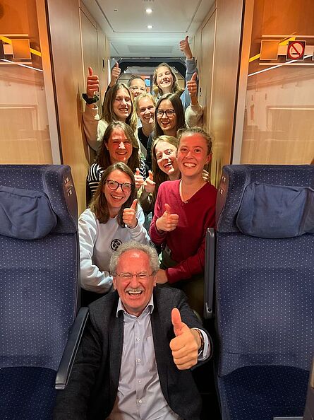 Aus der Ferne Frankenthal erreichten uns sonnige Nachrichten in München. Nach einer 2:0 Führung sicherten sich die Damen mit einem 2:1 die drei Big Points im Rennen um den Klassenerhalt. Auf der Rückfahrt nach München traf die Mannschaft im Zug auf unseren ehemaligen Oberbürgermeister Christian Ude, der sich gerne der Party der Damen anschloss.