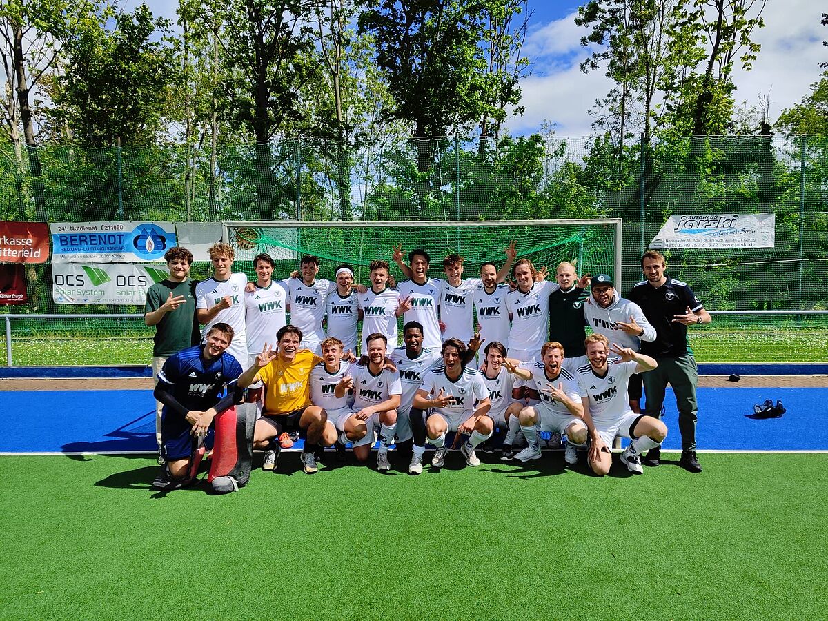 Durch die Niederlage am Samstag war das Spiel am Sonntag bereits ein Finale. Verlieren verboten. Die Jungs starteten super gegen die Berliner, erspielten sich Chancen. Doch wieder kam es bitter. Die Berliner nutzten einen Abwehrfehler eiskalt zum 0:1. Doch dieses Mal hatte der TuS eine Antwort parat. Ein Doppelschlag durch Cole Friedländer und Keagan Stevens bescherte eine 2:1 Führung zur Halbzeit. Im zweiten Durchgang entwickelte sich ein sehr intensives Spiel. Es ging hin und her. Chancen für Berlin häuften sich, doch auch die TuS Herren hatten mehrmals ein weiteres Tor auf dem Schläger. Den Lucky Punch hatte dann leider doch Berlin. Die Gastgeber intensivierten noch einmal den Druck, erspielten sich Ecken, doch leider letztendlich erfolglos. Es blieb beim 2:2. Im Shootout sicherte man sich den Extrapunkt durch gute Schützen und einen starken Torwart Niclas Meiler.
