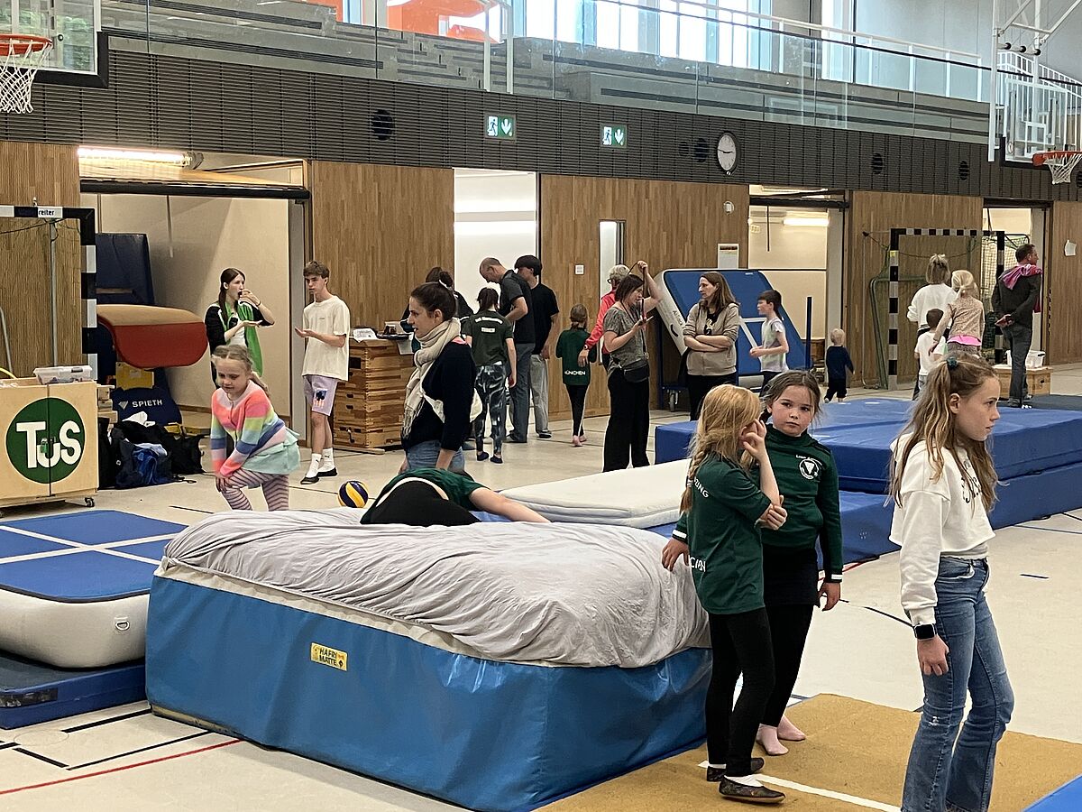 Ab 12 Uhr verlagerten sich die Festivitäten ins Freie und in die Sporthalle. Das Ziel, Gemeinschaft und Freude am Sport zu zelebrieren, ging am Nachmittag voll auf. Rund 250 Erwachsene und Kinder aus allen Abteilungen waren ständig miteinander zwischen den unterschiedlichen, von den Abteilungen aufgebauten Stationen im Austausch. Alle Teilnehmer waren offen, etwas Neues auszuprobieren.