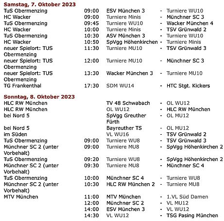 Spielplan 7. und 8. Oktober