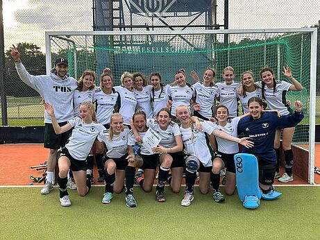 Nach einem gelungenen Start in die Saison wollte man auch im 4. Saisonspiel gegen die Damen vom RRK weiter Punkte sammeln. Leider schafften es die TuS Damen nicht von Beginn an wach mitzuspielen und so konnten die Gäste in der 8. Minute ein frühes Tor erzielen. Die TuS Damen blieben aber dran und erspielten sich von Viertel zu Viertel mehr Spielanteil. Den Ausgleich zum 1:1 erzielte Max Collien durch einen Eckenschlenzer in der 44. Minute. Im letzten Viertel musste der TuS leider durch grüne Karten zweimal in Unterzahl spielen, wodurch die Damen etwas den Druck auf die Gäste rausnehmen mussten. Nach regulärer Spielzeit stand es somit am Ende 1:1, wodurch es wieder ins Penalty-Shootout ging. Mittlerweile gehen die TuS Damen fast schon routiniert in die Penalties und so konnte ein anfänglicher Rückstand durch Tore von Zora Boesser, Clara Ellerkmann und Lara Bittel wieder aufgeholt werden. Nach jeweils 5 Schützen stand es somit 4:4. Der 6. Penalty wurde auf beiden Seiten vergeben. Die Entscheidung fiel beim 7. Penalty, den zuerst Daniela Geppert gegen die RRK Spielerin abwehren konnte, Lara Bittel konnte im Anschluss die RRK Torhüterin mit einem starken Penalty überwinden und somit 2 weitere Punkte für die TuS Damen sichern.