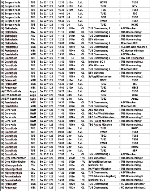 Sonntag, 23.11., 12:00 Uhr, Grandlhalle – gegen den ASV