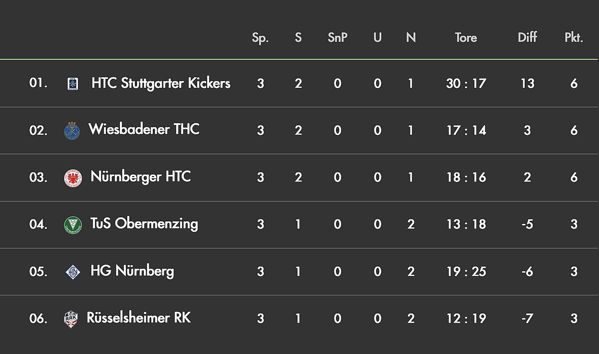 Ein nicht so gutes Wochenende für die Herren. Die Punkte blieben in Rüsselsheim und Wiesbaden. Wie eng es in der Liga zugeht, zeigt die Tabelle. Keine Mannschaft ist noch ungeschlagen. Am Samstag in Nürnberg gegen HGN sollten wieder drei Punkte drin sein.