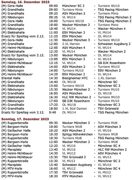 Unsere Jugendmannschaften sind wieder in den Münchner Hallen zu finden. Hier der gesamte Spielplan