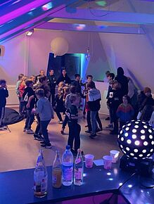 Vergangenen Samstag hat erstmals die TuS-Kinderdisko der Minis und der Teams bis U 14 ihre Lautsprecher aufgedreht. So viel vorweg: Das Event-Team fand es großartig! Die ca. siebzig Kinder und Jugendlichen haben Chips und Gummibärchen konsumiert, bis der höchst mögliche Sättigungsgrad erreicht war. Die kalorischen Sünden konnten anschließend beim Tanzen zur Beruhigung von Eltern und Trainern abgebaut werden. Für Musik und gute Laune haben DJ Willi und DJ Leo gesorgt. Die TuS-Kinder genossen es sichtlich, von den mithelfenden Eltern an der Bar bedient zu werden. Eine gelungene Veranstaltung, die nach Wiederholung ruft und fest in den TuS-Veranstaltungskalender aufgenommen werden sollte, damit es auch nächstes Jahr wie weiland bei Ilja Richter im ZDF – die Älteren erinnern sich . . . – heißt: "Licht aus, Spot an!“